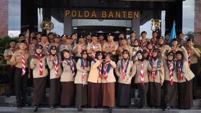 Serang – Direktur Pembinaan Masyarakat (Dirbinmas) Polda Banten Kombes Pol Sofwan Hermanto secara resmi melepas Kontingen Saka Bhayangkara Kwarda Gerakan Pramuka Provinsi Banten yang akan mengikuti Perkemahan Bakti Satuan Karya Pramuka Bhayangkara (Pertikara) Nasional ke IV tahun 2022 di Provinsi Sumatera Selatan, yang dilaksanakan di Lobi Utama Polda Banten pada Jumat (11/11).