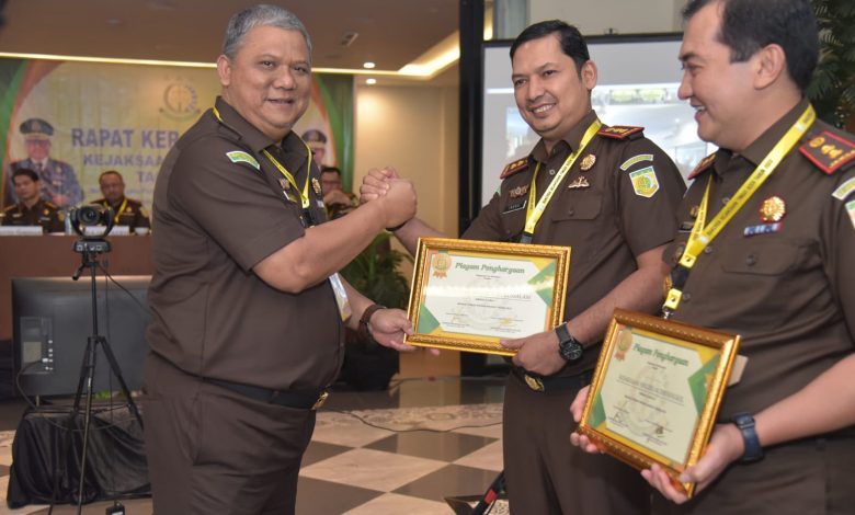 Kepala Kejaksaan Tinggi Aceh : Bambang Bachtiar memberikan apresiasi kepada Kepala Kejaksaan Negeri Subulussalam – May Hardi Indra Putra. SH. MH sebagai peraih Kejari Terbaik dalam penanganan kasus-kasus korupsi diwilayah hukum Kejari Subulusalam.