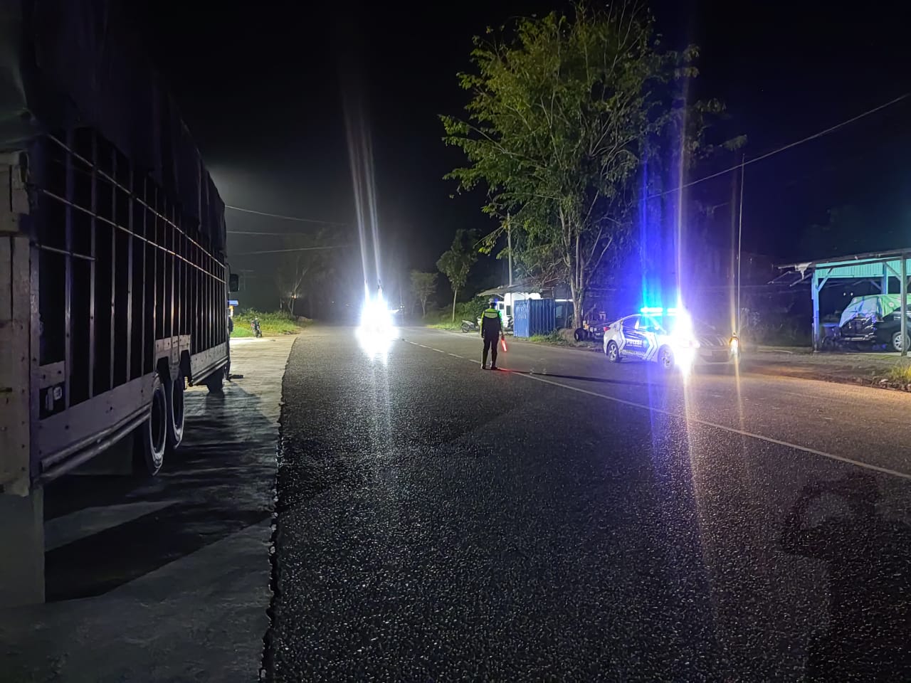 Dinastinews.ciom Aceh | Calang | Personel Satuan Lalu Lintas (Satlantas) Polres Aceh Jaya melaksanakan patroli Dua Arah Barat – Selatan – tepatnya Jalan lintas Banda Aceh-Meulaboh – Kecamatan Krueng Sabee – Kabupaten Aceh Jaya – Kamis(15/12/2022)malam.