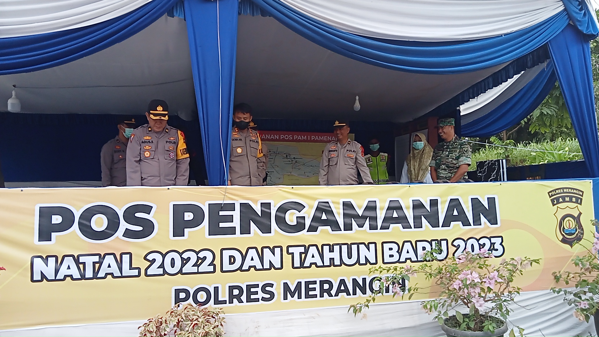 Dinastinews.com – Merangin Jambi, Jum’at 23 Desember 2022, Pukul 09:00 wib,Kapolres Merangin AKBP. Dewa Ngakan Nyoman Arinata. S.I.K.,MH bersama Kompol. Agus Saleh. SH Kabag Ops Polres Merangin bersama Kasi Humas Aiptu. Ruly. SH.MH tinjau Pos PAM Dalam rangka pelaksanaan Ops Lilin 2022.
