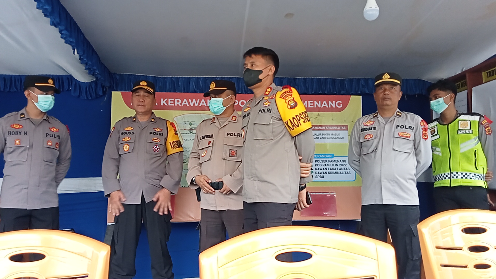 Bertempat di Wilayah Hukum Polsek Pamenang. Pukul 09:35 wib Rombongan Kapolres Merangin di sambut AKP. David PUL Tampubolon serta Satgas Ops Lilin 2022.