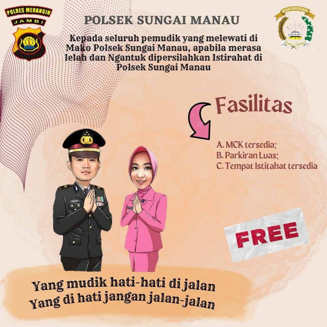 Jaran polres Merangin dengan Jajaran Polsek nya mensikapi Mudik lebaran laksanakan kegiatan Jasa Tanpa Bayar ” berupa penitipan kendaraan ” di Mapolsek dengan Fasilitas menarik memungkinkan sekali untuk beristirahat pada pemudik Lebaran Idul Fitri 1444H,2023M.