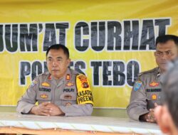 Kapolres Tebo Akbp Fitria Mega.M.Psi.Psi. yang diwakili Kasat Binmas Polres Tebo Akp Sutikno didampingi Kanit Bhabinkamtibmas Aipda Oka Mahendra pada hari Jum,at Tanggal 28 April 2023 pukul 08. Wib s/d selesai. Memimpin Jum,at Curhat di Kantin Ibu Era lokasi sebelah kanan Mako Polres Tebo.