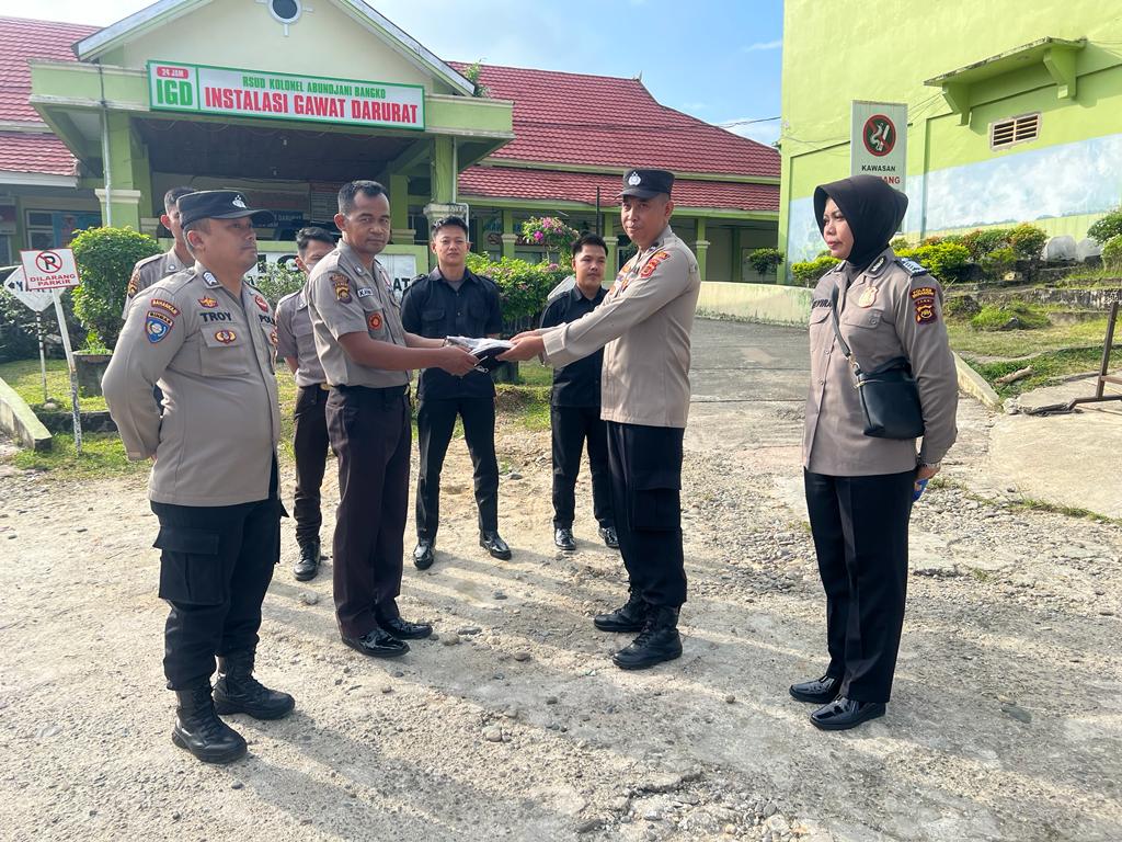 Dinastinews.com. Personil Satbinmas Polres Merangin melaksanakan Giat Binkamsa di RSUD.Kol.Abundjani Kel.Pmt.Kandis Kec.Bangko serta memberikan sarana Kontak.