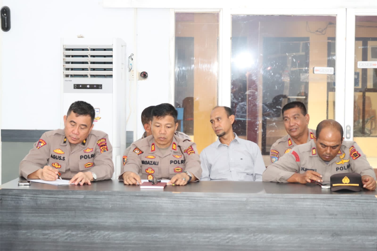 Pada Rapat Koordinasi mencari solusi mengenai beberapa permasalahan Sengketa lahan di hadiri Kompol. Agus Saleh. SH. Akp. Simsal Siahaan. S.ap.SH.MH. Akp. Harianto Sitepu. SE MM. Akp. Irgazali. SE. Akp. Nursan Subagyo serta Kapolsek Pamenang Akp. David PUL Tampubolon melalui Ipda. Rusdianto.