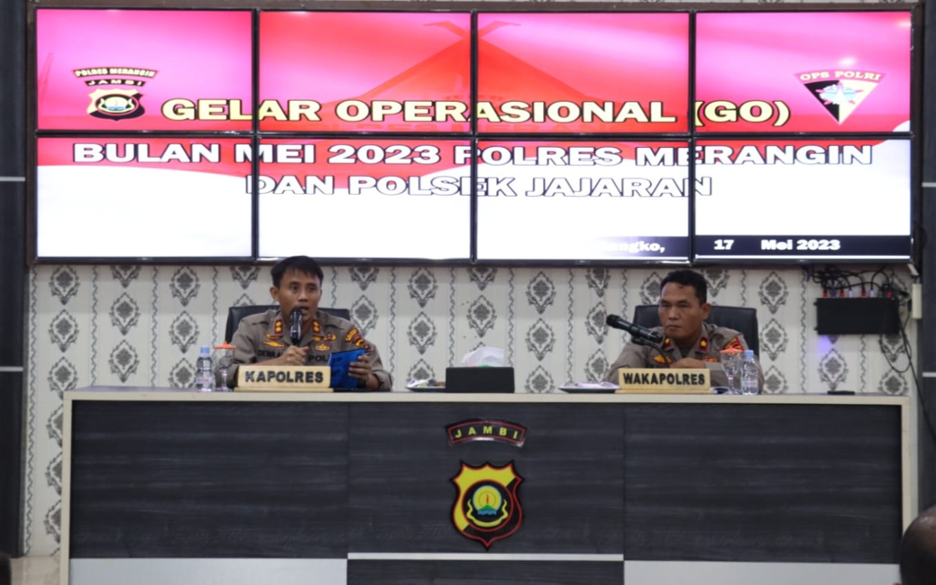 Dnastinews.com. Rabu 17 Mei 2023 Pukul 08:30 wib bertempat di ruang Aula Wira Satya Polres Merangin melaksanakan Gelar Operasi yang di singkat GO pada kegiatan bulan Mei 2023.