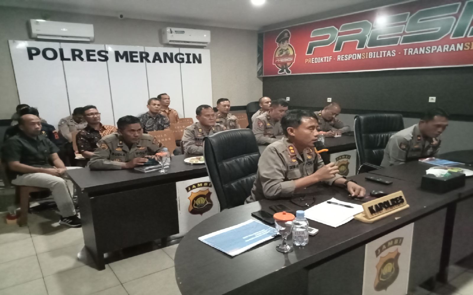 Kapolres Merangin saat kesempatan penyampaian pada Anev GO,Kapolres Sampaikan Situasi Kamtibmas di Kabupaten Merangin Konduksif. Sedangkan untuk Cipta kegiatan Kreatif Sambang Berupa kegiatan ” NGOPI GRATIS ” menggunakan kendaraan roda dua Bersama Bhabinkamtibmas mendapat Apresiasi warga dalam melaksanakan Sambang dialogis dan menerima curhatan masyarakat.