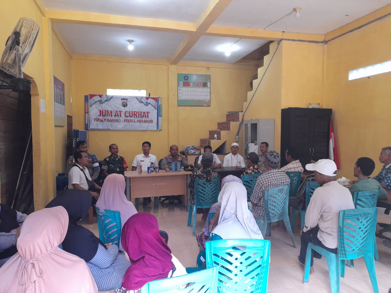 Dinastinews.com. Program Jum’at Curhat Polsek Bangko oleh Kapolsek Bangko dan Personil Polsek Bangko di desa pulau rengas kecamatan Bangko Barat Kabupaten Merangin
