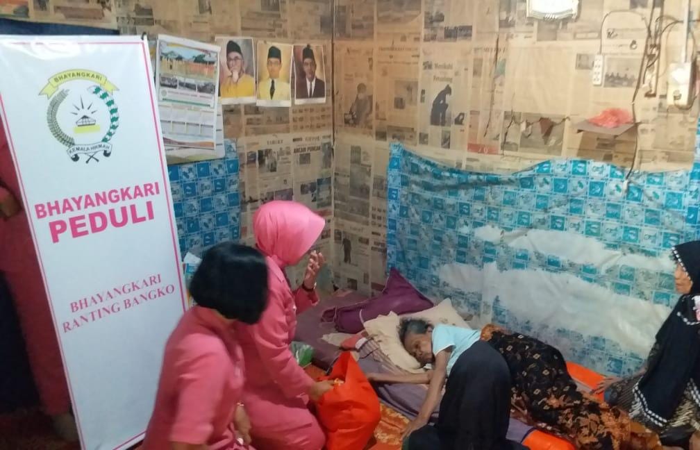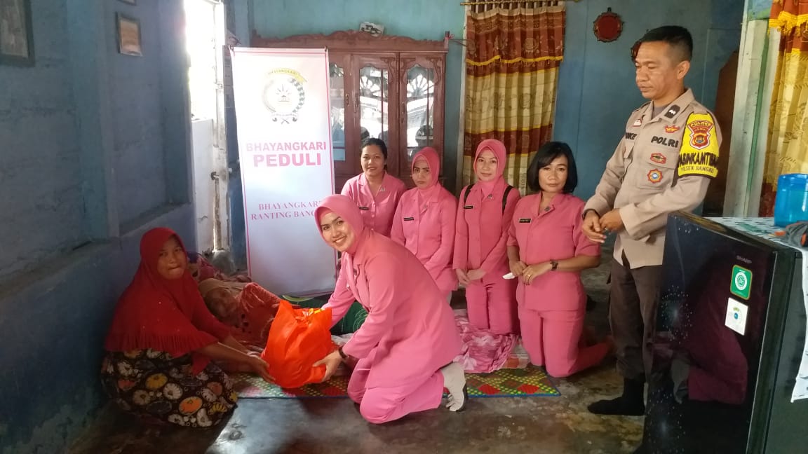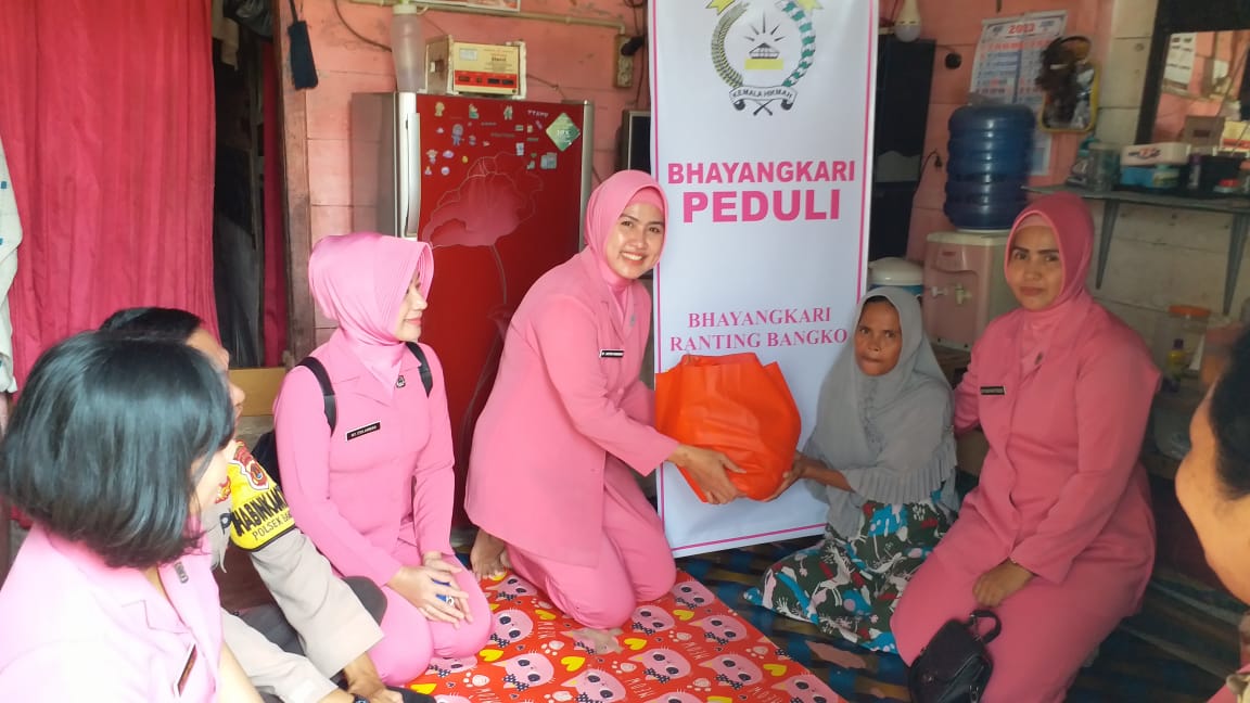 Mendampingi kegiatan Bhayangkari Ranting Bangko yang dipimpin oleh ketua Bhayangkari Ranting Bangko Ny. Agustin R. Agustiansyah beserta staff melaksanakan kegiatan Anjangsana/Bhakti sosial kepada warga yang kurang mampu di seputaran Kec. Bangko.