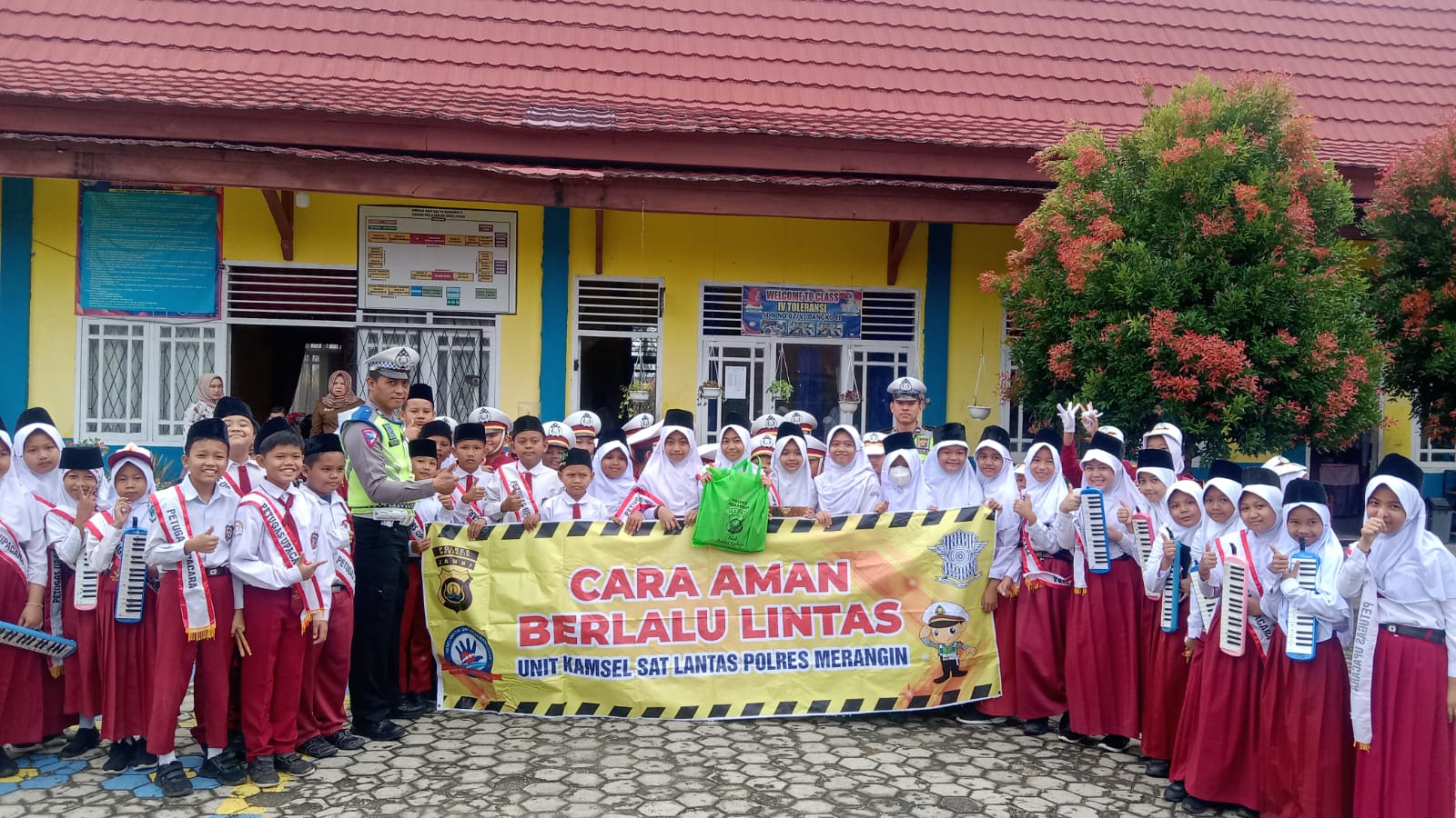 – Melalui Polisi Sahabat anak dan Polisi Sekolah kira ciptakan nuansa Keharmonisan dan keakraban pada cikal bakal penerus bangsa, yang mana pelaksanakan kegiatan sebagai pembina upacara bendera dengan menyampaikan larangan anak SD/anak belum cukup umur untuk tidak boleh mengendarai sepeda motor dan memberikan pengertian penggunaan sepeda listrik tidak boleh dikendarai di jalan raya.