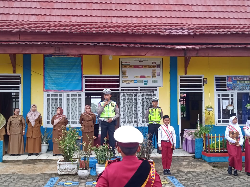 Dinastinews.com. Kegiatan unit Kamsel Sat Lantas Polres Merangin Hari Senin Tanggal 31 Juli 2023 Pukul 07.00 Wib melaksanakan kegiatan di SDN 02 BANGKO Langsung dengan kegiatan Upacara bendera.