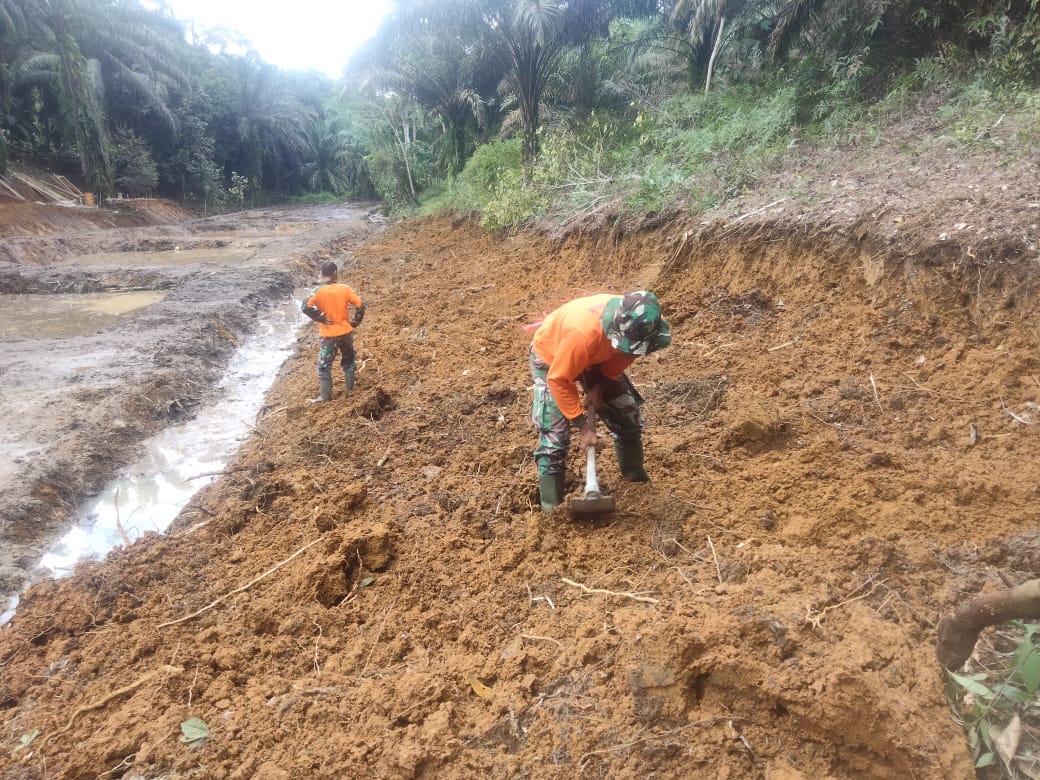 “Anggota Satgas TMMD hari ini sedang menyiapkan pembukaan jalan menuju lokasi ketahanan pangan, seban kolam, kandang kambing dan sawah ini letaknya berdekatan”pungkasnya.