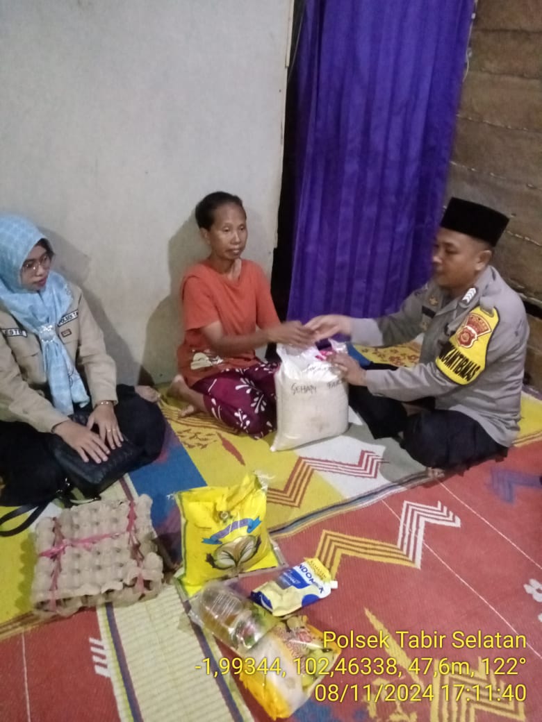 Dinastinews.com. Merangin-Jambi, Jajaran Polsek Tabir Selatan Polres Merangin melalui Bhabinkamtibmas bersama anggota Yayasan Pundi Amal Jum’at Berkah Tabir Selatan, Laksanakan (COOLING SYSTEM) Patroli Sambang dan memberikan bantuan kepada warga. (8/11/2024).