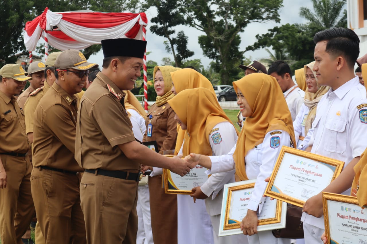 Penghargan tersebut secara simbolis diberikan Pj Bupati Merangin Jangcik Mohza, melalui Sekda Merangin Fajarman usai upacara peringatan HKN ke-60 yang diikuti seluruh pegawai Puskesmas-puskesmas dan ribuan ASN Pemkab Merangin.
