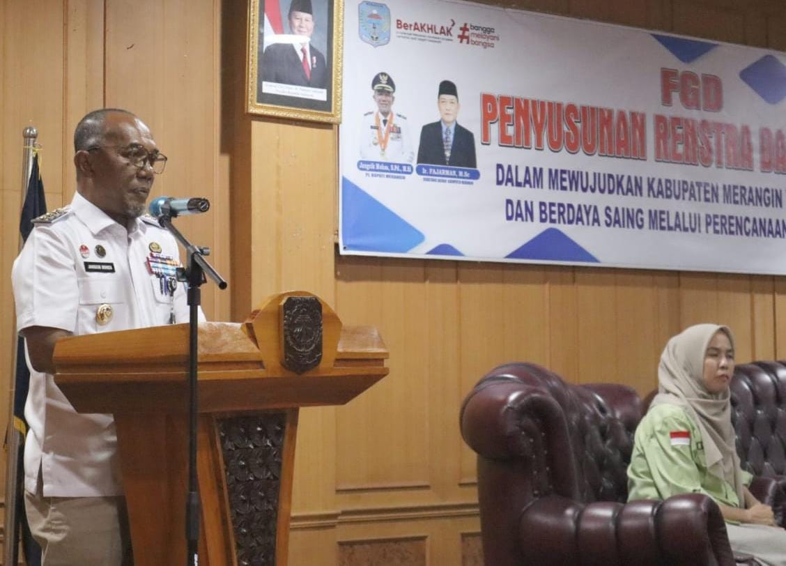 Bangko-Penjabat (Pj) Bupati Merangin Jangcik Mohza membuka Forum Group Discussion (FGD), penyusunan Restra dan Renja OPD Kabupaten Merangin, di Aula Depati Payung Bappeda Merangin, Rabu (4/12).