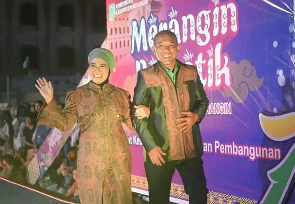 Menariknya pada malam ‘Merangin Berbatik’ itu, Pj bupati tampil memukau bergandengan dengan Ketua TP PKK Merangin Ny Suflini Jangcik yang malam itu mengenakan batik cantik bermotif Brung Kuaw.