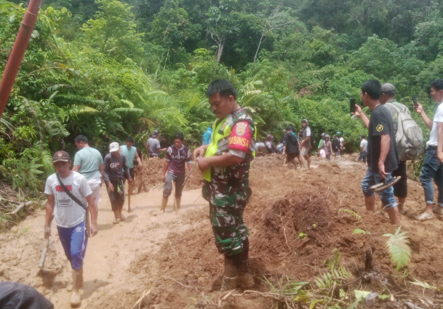 Lokasi longsor telah dibersihkan dengan bantuan alat berat yang dikerahkan oleh Pekerjaan Umum dan Perumahan Rakyat (PUPR) Provinsi Jambi. Dengan adanya alat berat ini, proses pembersihan jalan dapat berlangsung lebih cepat dan efektif. Selain itu, Babinsa dan masyarakat setempat juga bekerja sama secara gotong-royong, menunjukkan semangat kebersamaan dan kepedulian terhadap keselamatan warga.