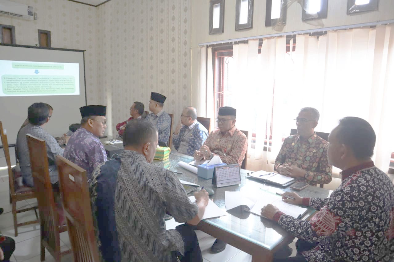 Tampak fokus mengikuti rapat itu, Staf Ahli Bupati Merangin Irsadi, Asisten II Setda Merangin Suherman, Kadis Perikanan Dedi Darmantias, Kadis Peternakan dan Perkebunan Hendri Widodo, Kadis Balitbanda Selamet, Kadis PMD Adrei dan Kabag SDA Setda Merangin Hendri Putra. (kominfo)