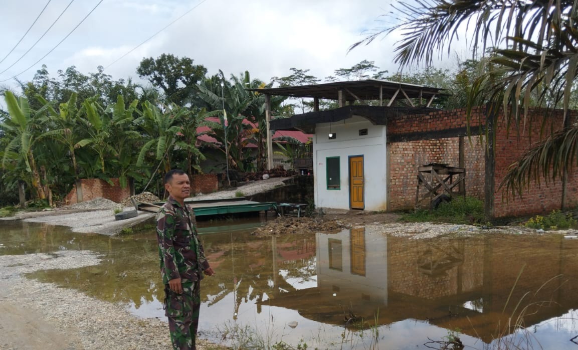 Sarolangun, 6 Maret 2025 – Hujan deras yang turun selama beberapa hari terakhir mengakibatkan terjadinya banjir di Desa Pematang Kulim, Kecamatan Pelawan, Kabupaten Sarolangun. Banjir dengan ketinggian rata-rata mencapai 10 cm ini menggenangi sejumlah perumahan warga dan mengancam kenyamanan serta keamanan mereka. Mengetahui kondisi tersebut, Serka Sunardi, Babinsa Koramil 420-02/Muara Limun, Kodim 0420/Sarko, segera turun ke lokasi untuk memantau langsung situasi di desa binaannya. Keprihatinan atas kondisi banjir yang melanda desa tersebut mendorong Serka Sunardi untuk bergerak cepat, guna memastikan warga tidak mengalami kerugian lebih lanjut.