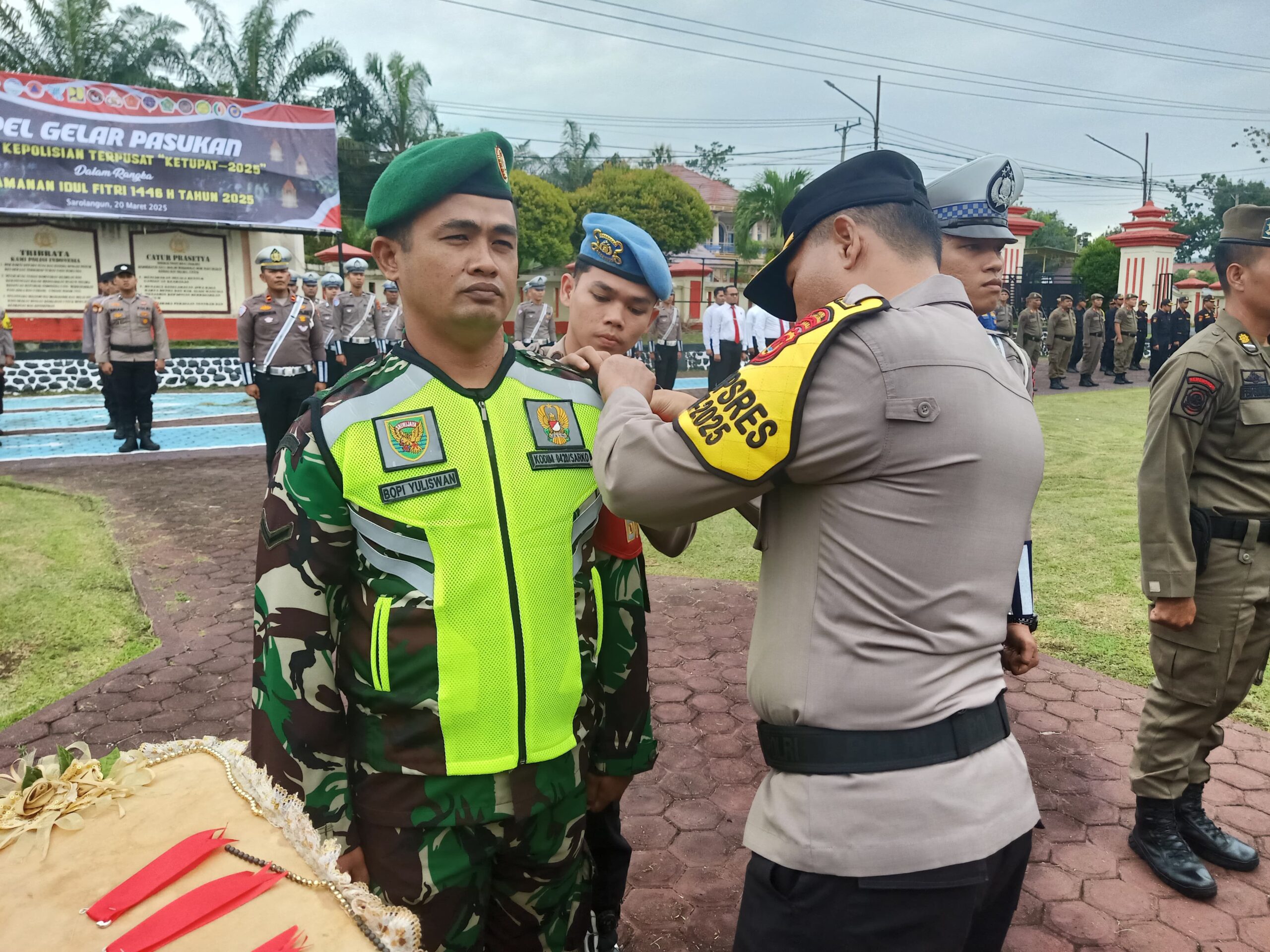 Sarolangun, pada pukul 16.30 Wib, Kamis 20 Maret 2025 – Dalam rangka persiapan pengamanan Idul Fitri 2025, Dandim 0420/Sarko Letkol Inf Suyono S.Sos, Diwakili Danramil 420-09/Bangko Mayor Chk Dedy Afrizal SH., MH. mengikuti kegiatan apel gelar pasukan Operasi Ketupat 2025 yang berlangsung di halaman Polres Sarolangun. Apel tersebut dihadiri oleh Bupati Sarolangun, Kapolres Sarolangun, Kadis Perhubungan Sarolangun, Kasat Polpp Sarolangun, Danramil 420-04/Sarolangun, Personil TNI, Polri, Damkar, SatpolPP serta PMI.