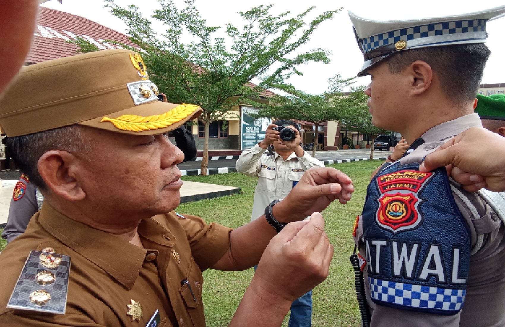 Menjelang amanat Inspektur Upacara di laksanakan Penyematan Pita tanda Operasi di wakili Anggota Kodim 0420/Sarko, Personil Polres Merangin serta Personil Dinas Perhubungan Merangin serta SatPol PP.