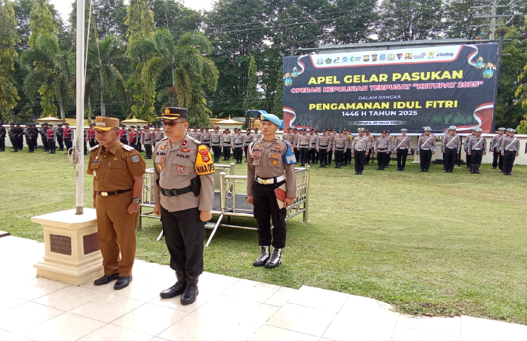 Apel Gelar Pasukan Operasi Kepolisian Terpusat ” KETUPAT ” 2025 dalam rangka Pengamanan Idul Fitri 1445H-2025M dimaknai persiapan personil dari satuan tugas bersama Operasi Ketupat 2025 akan digelar mulai 23 Maret sampai 8 April mendatang dengan tujuan Operasi Ketupat merupakan operasi kemanusiaan yang dilakukan Tni-Polri Perintahan terkait.