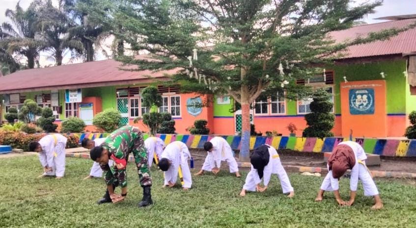 DNC. Merangin, Minggu 27 April 2025 – Dalam rangka pembinaan ketahanan wilayah (Bintahwil) dan menanamkan nilai-nilai kedisiplinan serta semangat bela negara sejak usia dini, Babinsa Koramil 420-08/Tabir, Kodim 0420/Sarko Sertu Kuswanto, memberikan pelatihan bela diri karate di SDN 52 Desa Sido Lego, Kecamatan Lintas Tabir, Kabupaten Merangin.