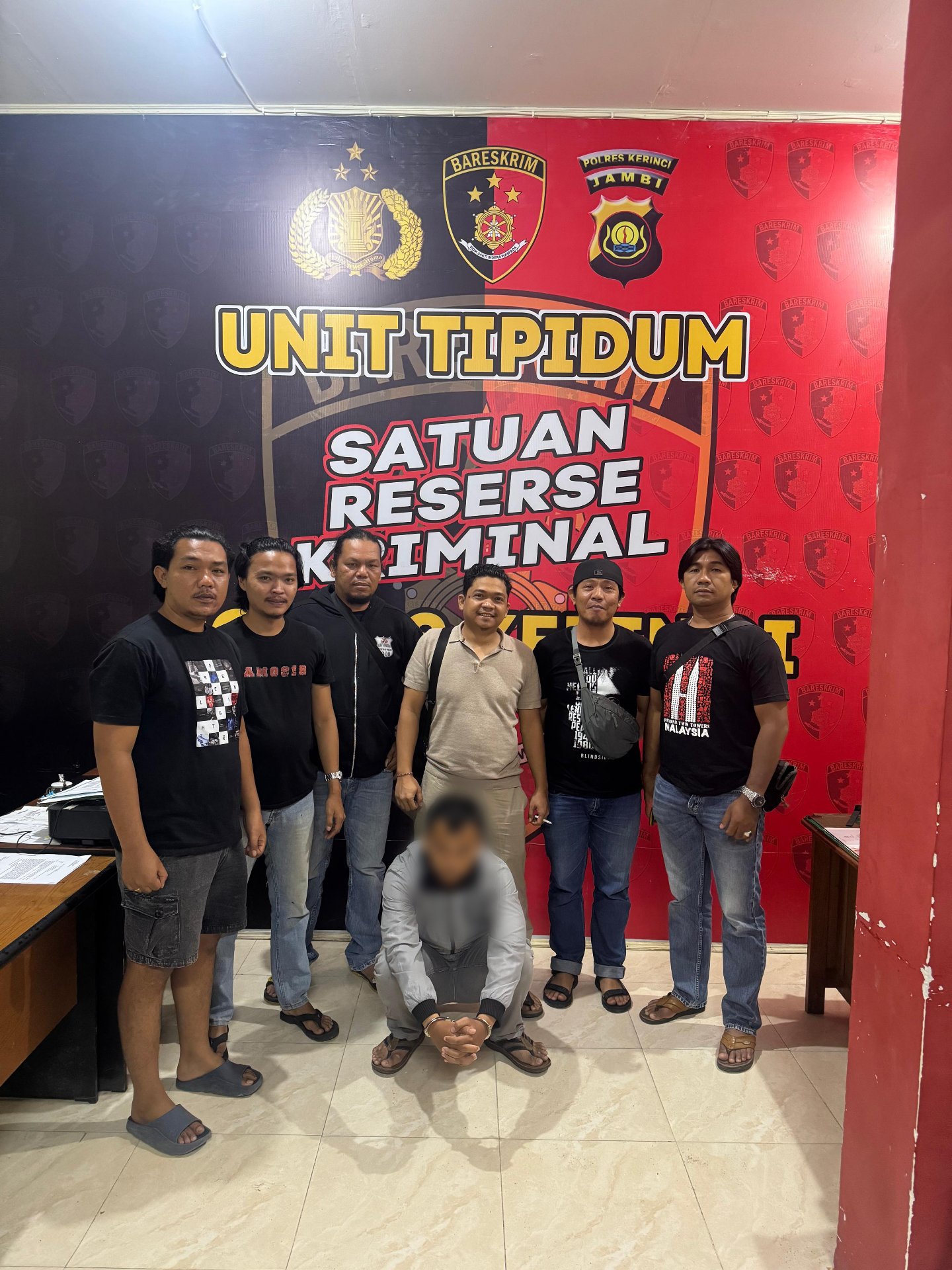 Pada hari Kamis tanggal 01 Mei 2025 Sekira pukul 23.30 wib Tim Opsnal Satreskrim Polres Kerinci mendapat informasi bahwa Pelaku berada di rumahnya. Tim Opsnal langsung menuju ke rumah Pelaku di Desa Pondok Beringin, Kecamatan Tanah Cogok, Kabupaten Kerinci, Provinsi Jambi dan langsung Mengamankan Pelaku beserta Barang Bukti ke Polres Kerinci untuk pemeriksaan lebih lanjut.