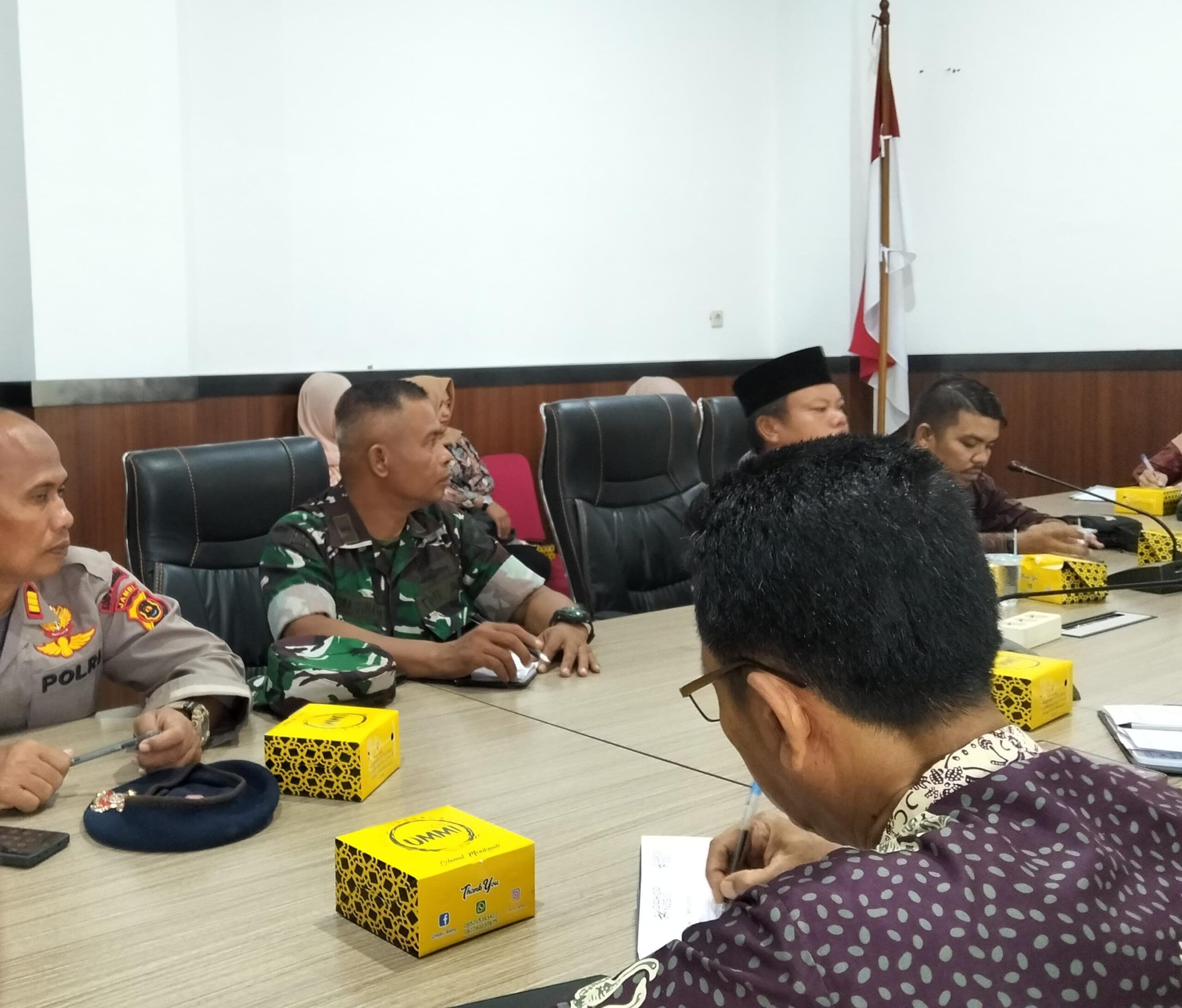 Rapat dipimpin langsung oleh Asisten I Setda Merangin, M. Sayuti, S.Ag, dan dihadiri lintas instansi seperti Kasi Ops Brimob B Pelopor Jambi AKP Sudartono, KBO Sat Intelkam Polres Merangin Ipda M. Taufik, Kabag Kesra Linun Zarlina, S.Hi, serta perwakilan dari Kemenag, Dishub, Satpol PP, Pramuka, dan Disbudparpora Merangin.