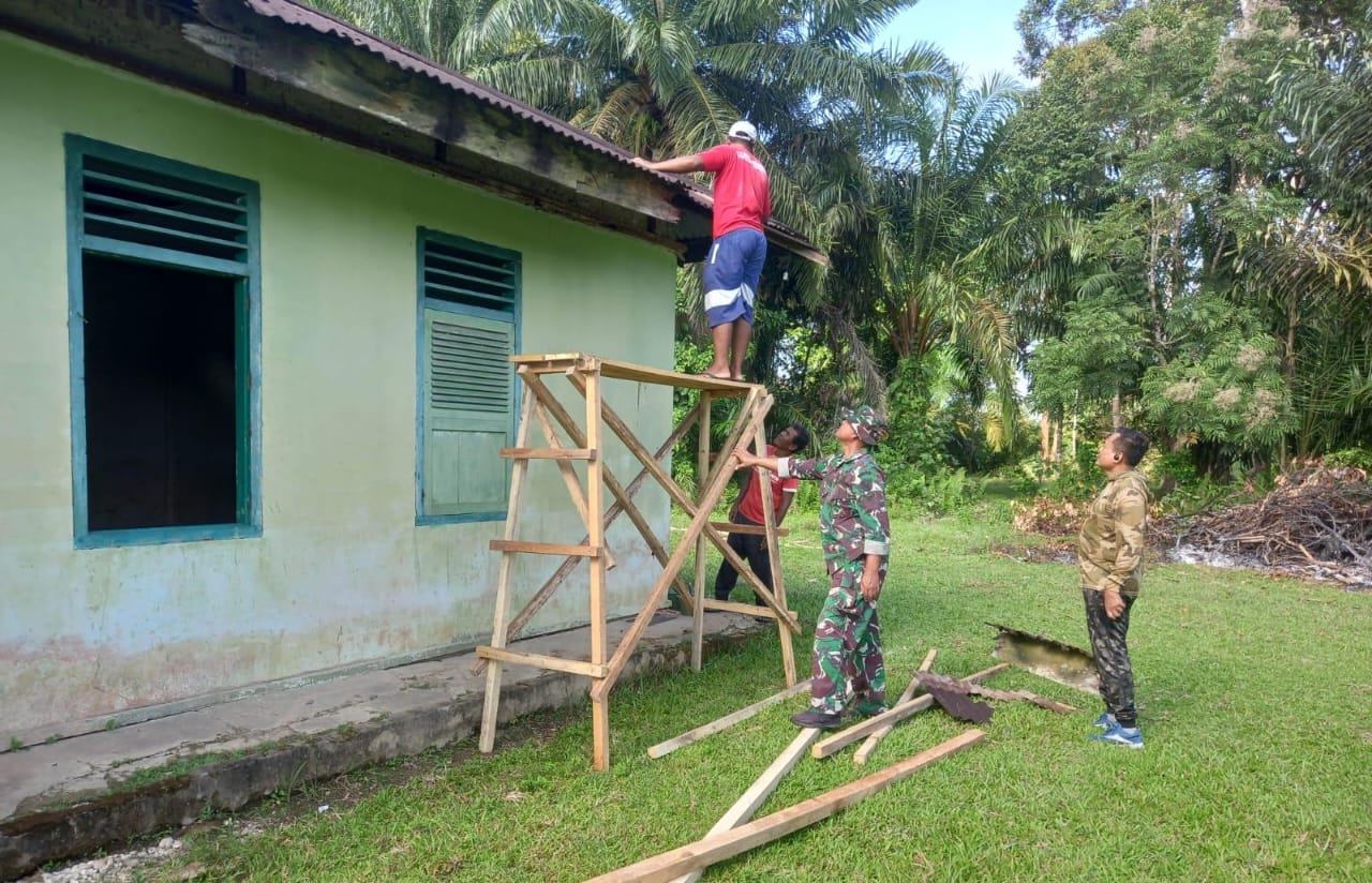 Kegiatan ini bertujuan untuk memastikan kondisi bangunan yang akan diperbaiki serta kelengkapan bahan yang dibutuhkan dalam proses rehabilitasi. Dalam pelaksanaannya, Mayor Inf Abdul Azis Efendi sebagai Danramil wilayah setempat turut meninjau langsung pekerjaan teknis yang tengah dilakukan oleh tim lapangan.
