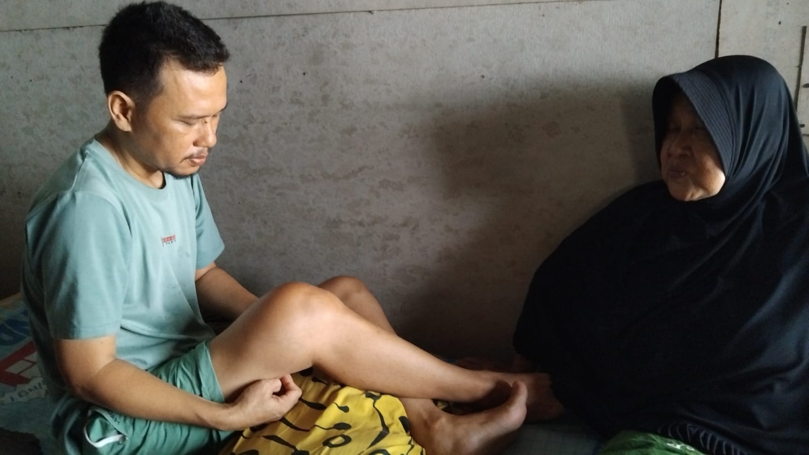 Di tengah kondisi ekonomi yang serba kekurangan, pasangan lansia itu berjuang sekuat tenaga merawat anak semata wayangnya yang kini kehilangan segalanya, termasuk mata pencaharian dan harapan.