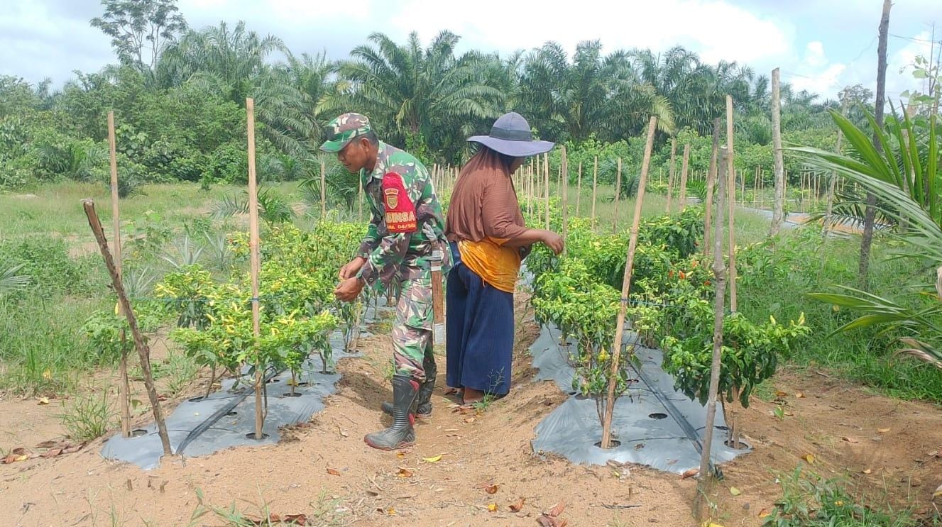 Sarolangun, 10 Juni 2025 – Dalam upaya memperkuat ketahanan pangan di wilayah, Babinsa Koramil 04/Sarolangun Kodim 0420/Sarko, Serka Deni Riadi, terus aktif mendampingi warga dalam kegiatan pertanian. Salah satu bentuk nyata peran aktif tersebut terlihat saat ia turun langsung ke lahan milik Ibu Tina, warga Desa Pulau Melako, Kecamatan Bathin VIII, Kabupaten Sarolangun, yang memanfaatkan lahan kosongnya untuk menanam cabe.