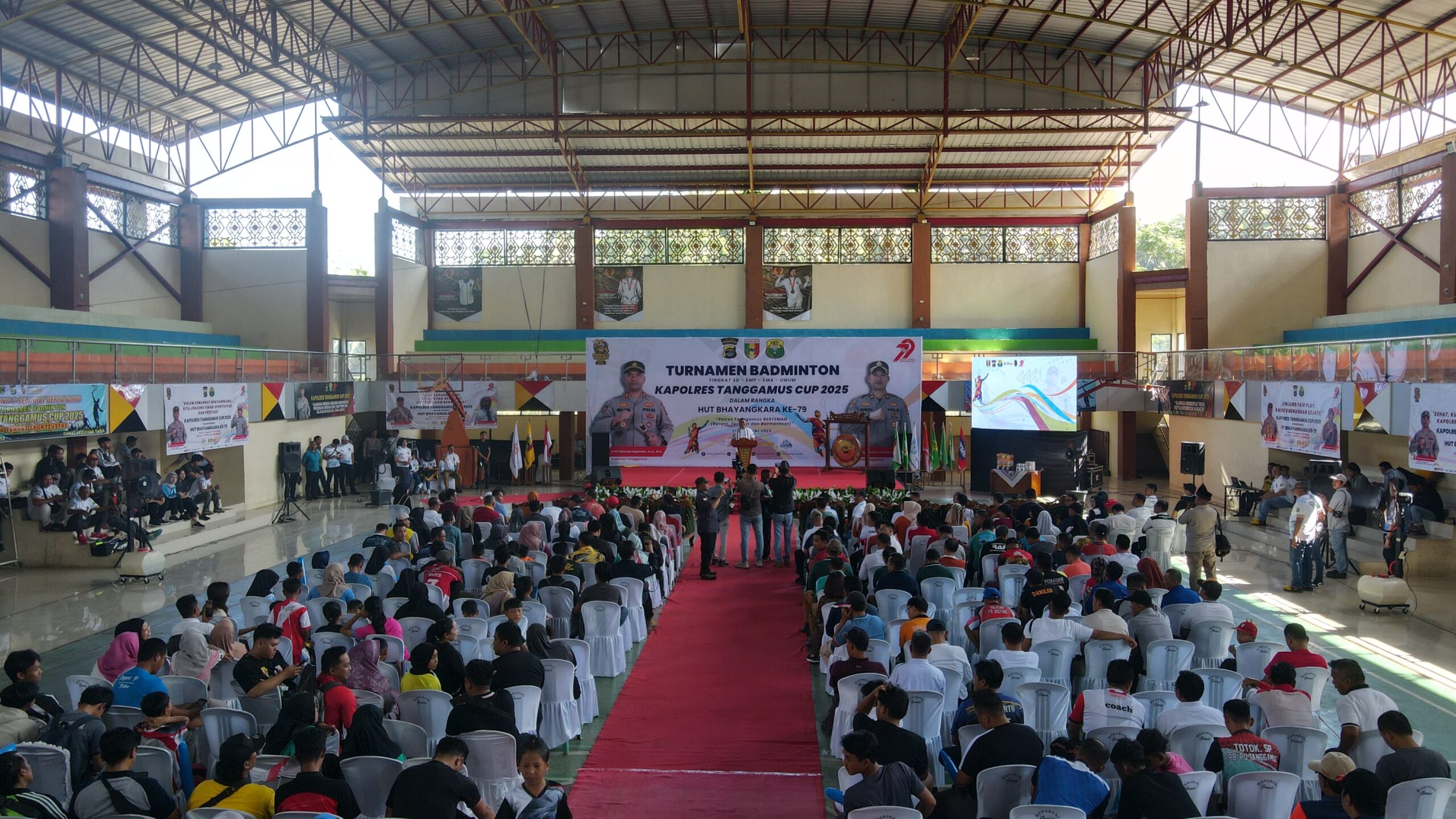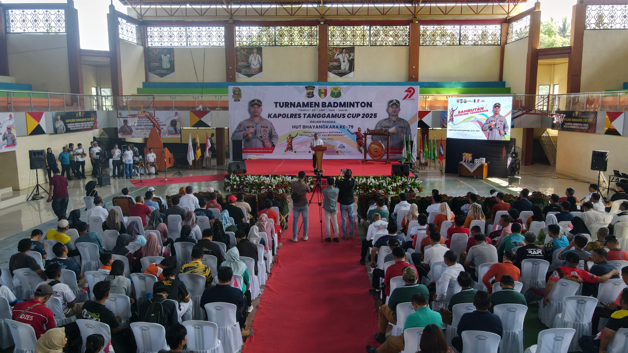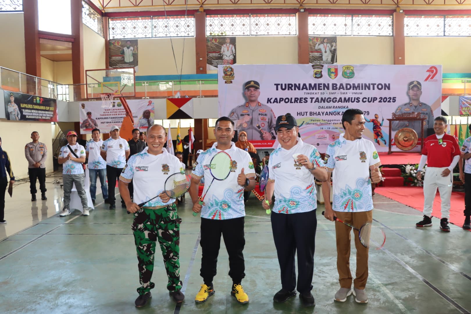 DinastiNews.Com | Tanggamus – Dalam rangka memeriahkan Hari Bhayangkara ke-79, Polres Tanggamus menggelar Turnamen Bulutangkis yang ditandai dengan upacara pembukaan resmi di GOR Kota Agung, Senin (16/6/2025).