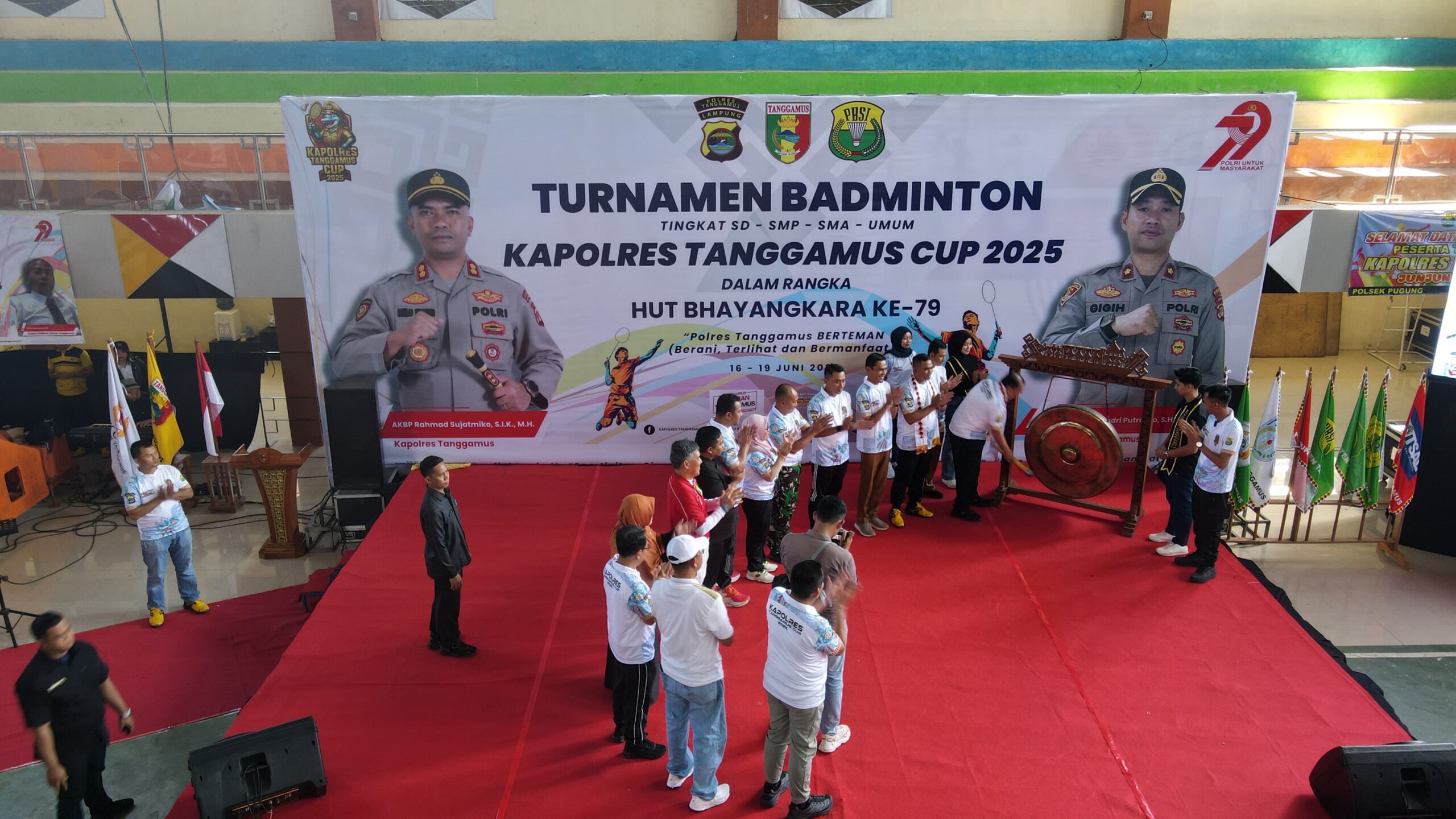 Turnamen ini secara simbolis dibuka oleh Bupati Tanggamus, Drs. Hi. Moh. Saleh Asnawi, M.A., M.H., bersama Kapolres Tanggamus AKBP Rahmad Sujatmiko, S.I.K., M.H., bersama Forkopimda melalui pemukulan gong yang disaksikan langsung oleh para tamu undangan dan ratusan peserta yang memadati GOR.