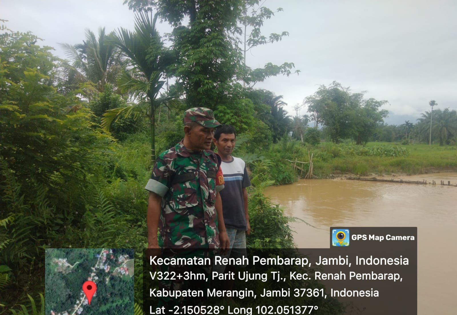 Sungai Manau – Untuk mengantisipasi adanya bencana Banjir dan tanah longsor, Babinsa Koramil 420-07/Sungai Manau Kodim 0420/Sarko, Serka Vony Yandri melakukan patroli Bansor sekalian cek debit air di Sungai Merangin wilayah Kecamatan Sungai Manau , Kabupaten Merangin. Kamis (26/6/2025)
