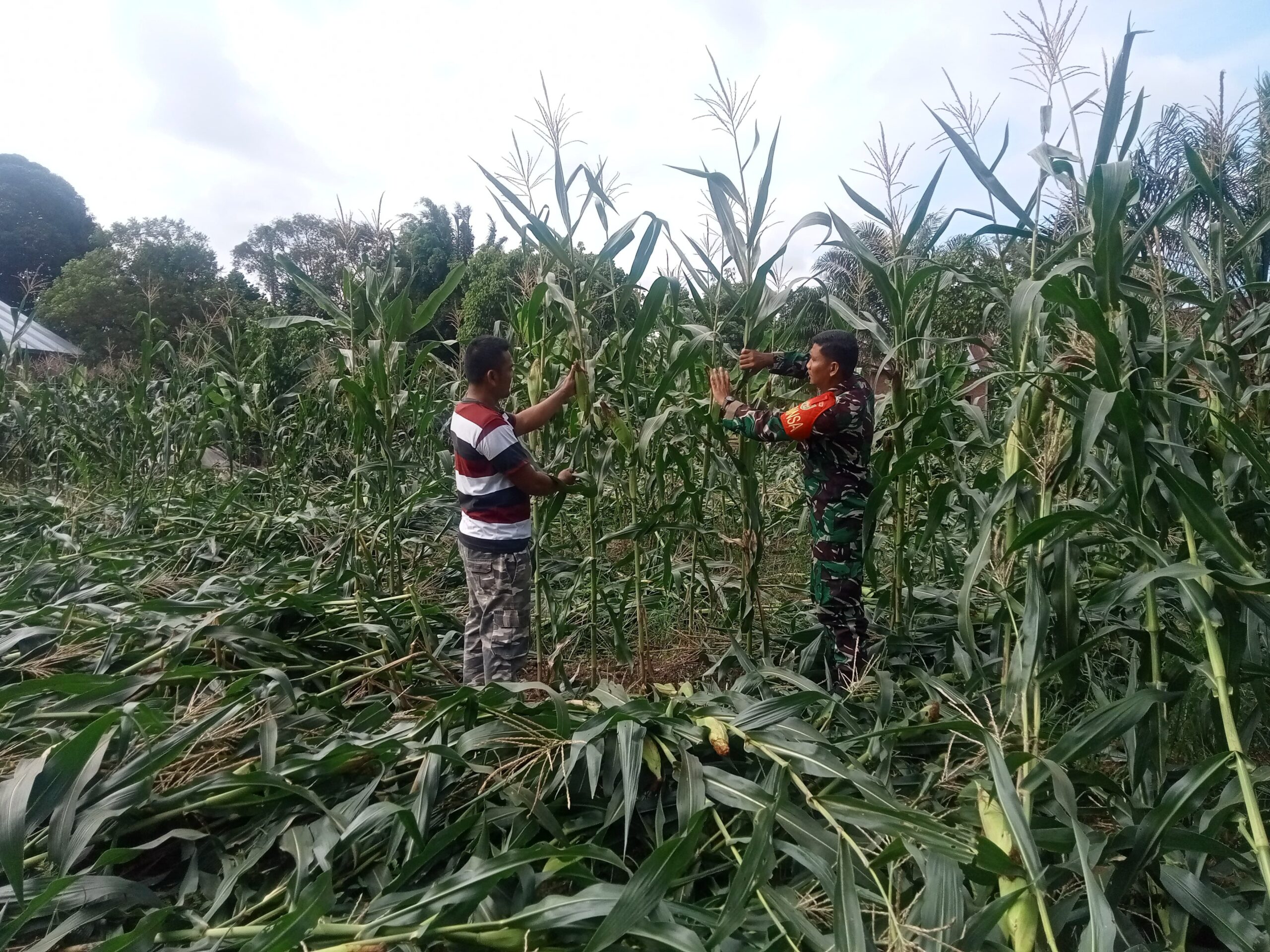 Babinsa Bantu Warga Panen Jagung di Desa Sungai Baung