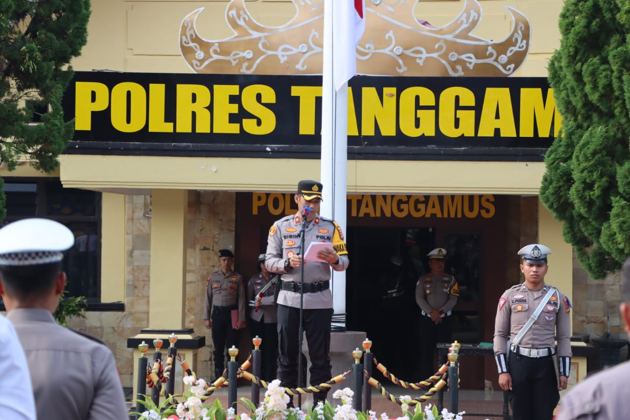 Kegiatan apel dipimpin langsung oleh Wakapolres Tanggamus, Kompol Gigih Andri Putranto, S.H., S.I.K., M.H., mewakili Kapolres Tanggamus AKBP Rahmad Sujatmiko, S.I.K., M.H.