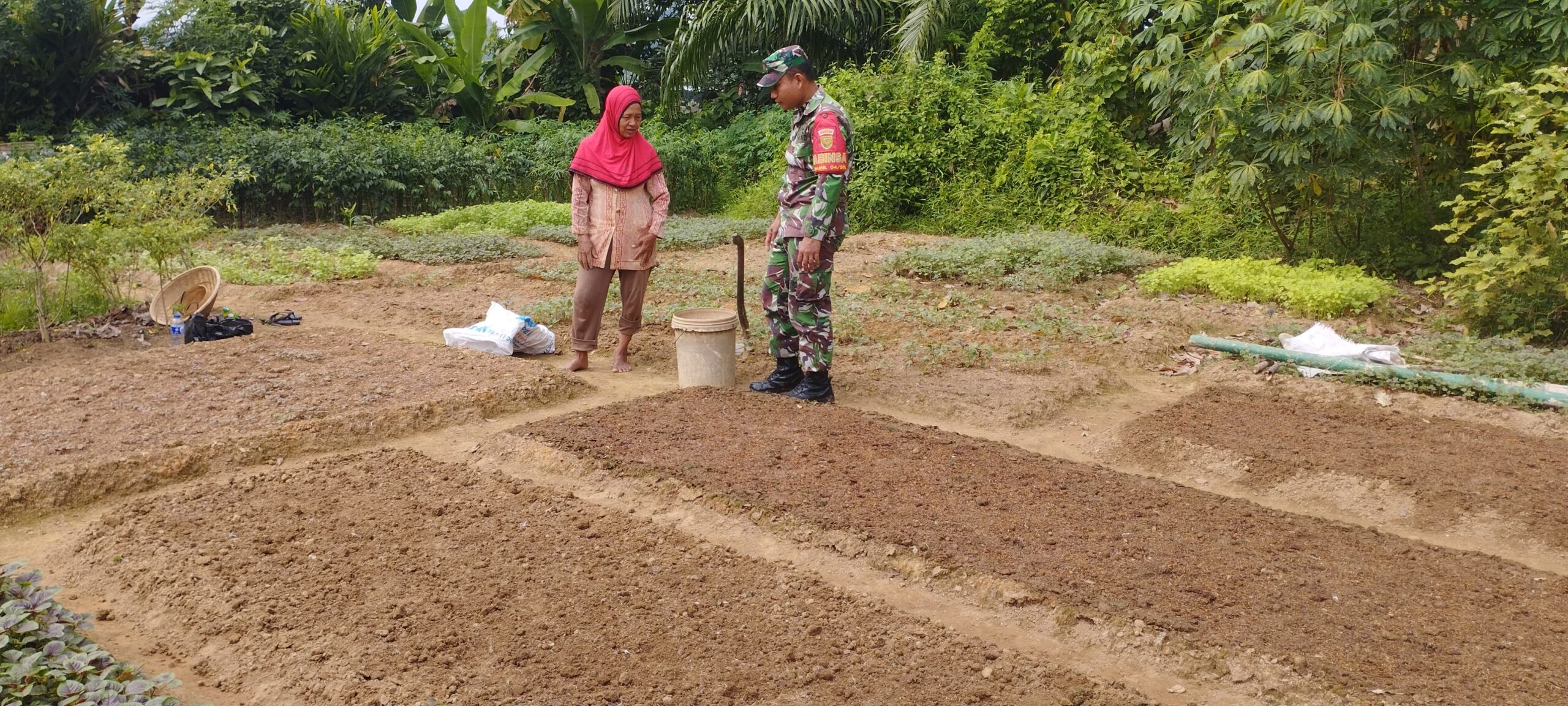 Babinsa Koramil 04/Sarolangun Kopda Bambang Gunawan Bantu Petani Rawat Kebun Sayuran Masyarakat