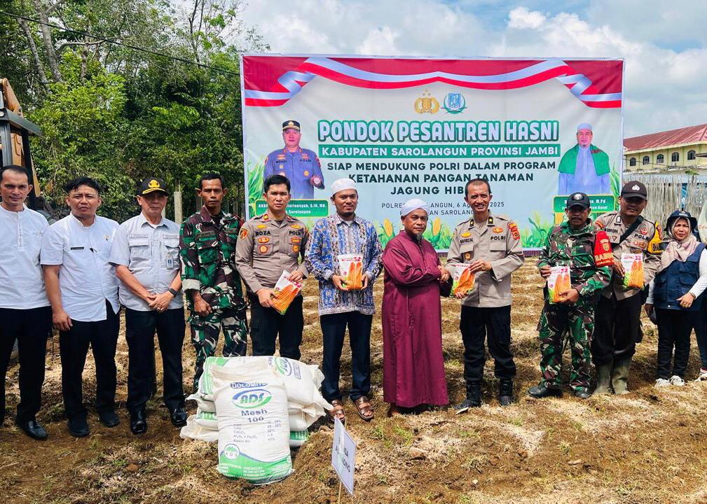 Kapolres Sarolangun AKBP Wendi Oktariansyah, S.I.K., M.H. diwakili Kabag Log Kompol Nafrizal S.H,M.H didampingi Kapolsek Sarolangun IPTU Rozalia saputra S.Pd, Wakapolsek IPDA Trihandoko SH., Camat sarolangun Bustra desman,SE.MM. di wakili oleh sekcam Aditya wiratana, Pimpinan pondok pesantren hasni Dr.Kh.safwan,M.Pd. melaksanakan penanaman jagung yang dilakukan di lahan milik Pondok Pesantren Hasni Kelurahan Aur Gading Kecamatan Sarolangun. Luas lahannya yang ditanami jagung mencapai 1 (satu) hektare.
