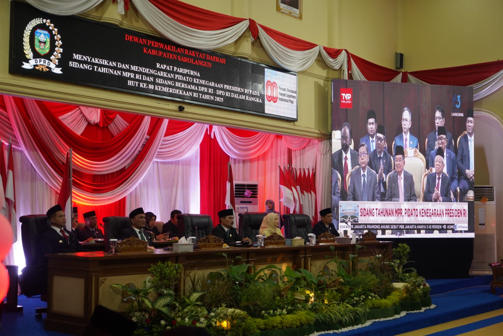 Sarolangun, 15 Agustus 2025 – Dalam rangka memperingati Hari Ulang Tahun (HUT) ke-80 Republik Indonesia Tahun Anggaran 2025, DPRD Kabupaten Sarolangun menggelar Rapat Paripurna Istimewa yang berlangsung pada pukul 08.00 WIB di Gedung DPRD Kabupaten Sarolangun.