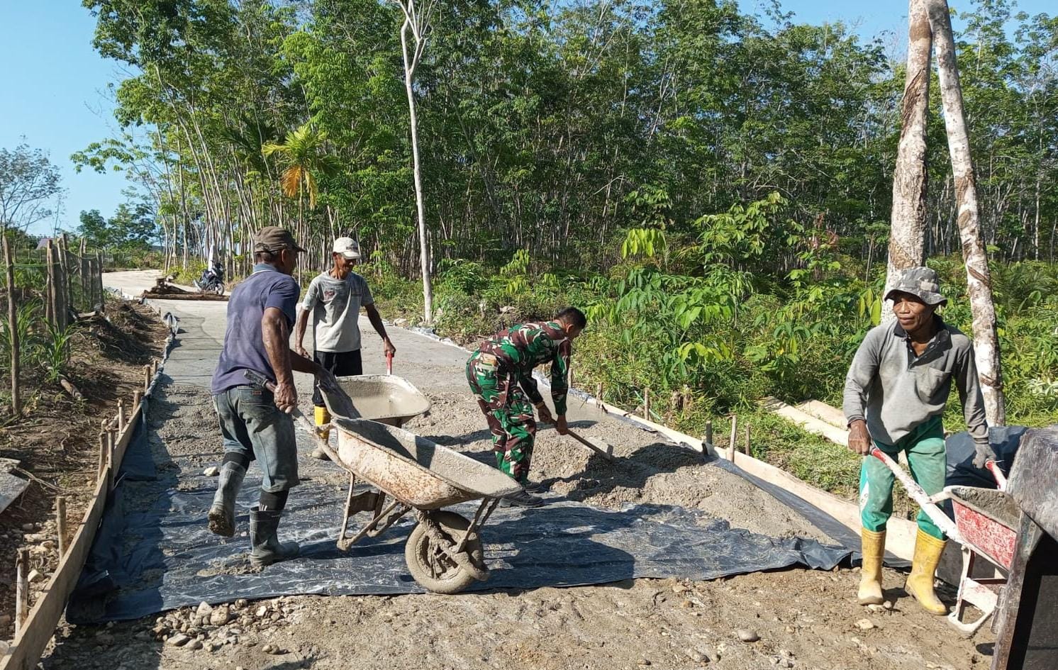 Kegiatan ini bukan sekadar kerja bakti biasa. Jalan yang sebelumnya masih berupa tanah dan sulit dilalui saat musim hujan, kini mulai dibangun secara permanen dengan cor beton. Peningkatan infrastruktur ini sangat penting, terutama bagi para petani yang selama ini kesulitan mengangkut hasil panen karena jalan licin dan berlumpur.