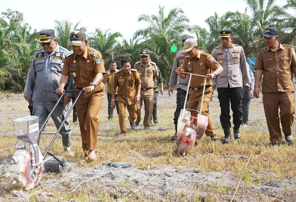 Bangko-Bupati Merangin H M Syukur melalui Wabup H A Khafidh bersama Kapolres Merangin AKBP Kiki Firmansyah, Wakil Ketua DPRD Merangin Herman Effendi dan unsur Frokopimda lainnya, tanam jagung serentak di Desa Mentawak, Senin (15/9).