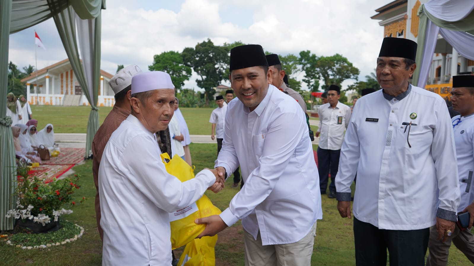 Dipenghujung acara, bupati bersama Pj Sekda Merangin Zulhifni dan unsur Forkopimda, membagikan secara simbolis sebanyak 720 bingkusan kepada para Lanjut usia (Lansia) Merangin.