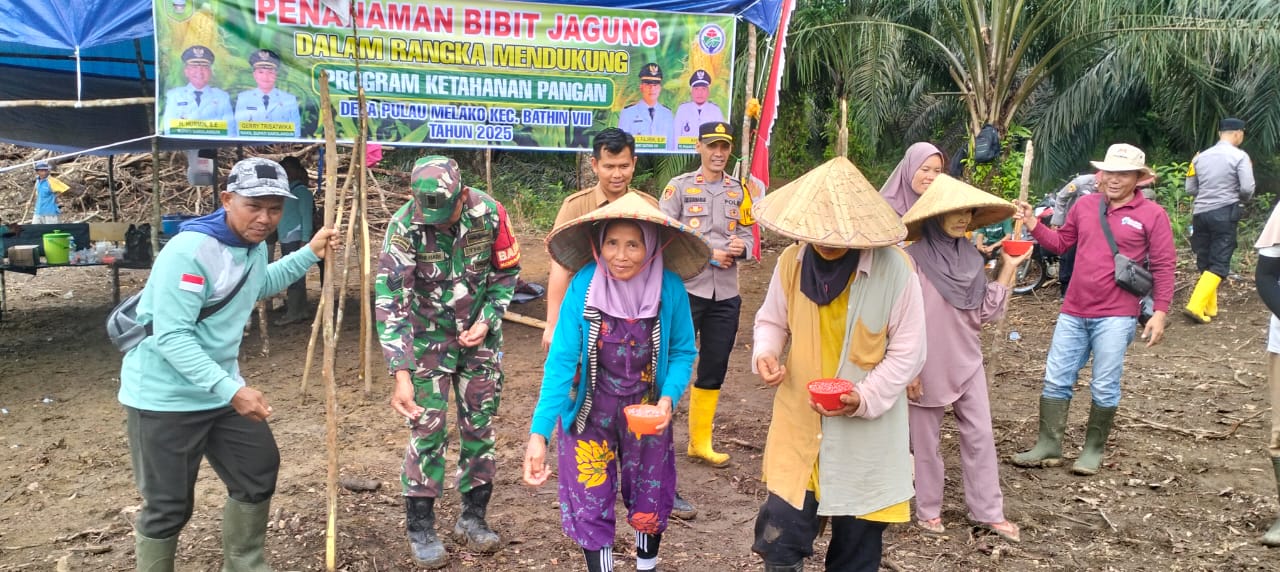 Sarolangun, Babinsa Koramil 420-04/Sarolangun Kodim 0420/Sarko Serka Deni Riadi hadiri Penanaman Jagung perdana di Desa Pulau Melako Kecamatan, Bathin VIII Kabupaten, Sarolangun . (25/09/2025)
