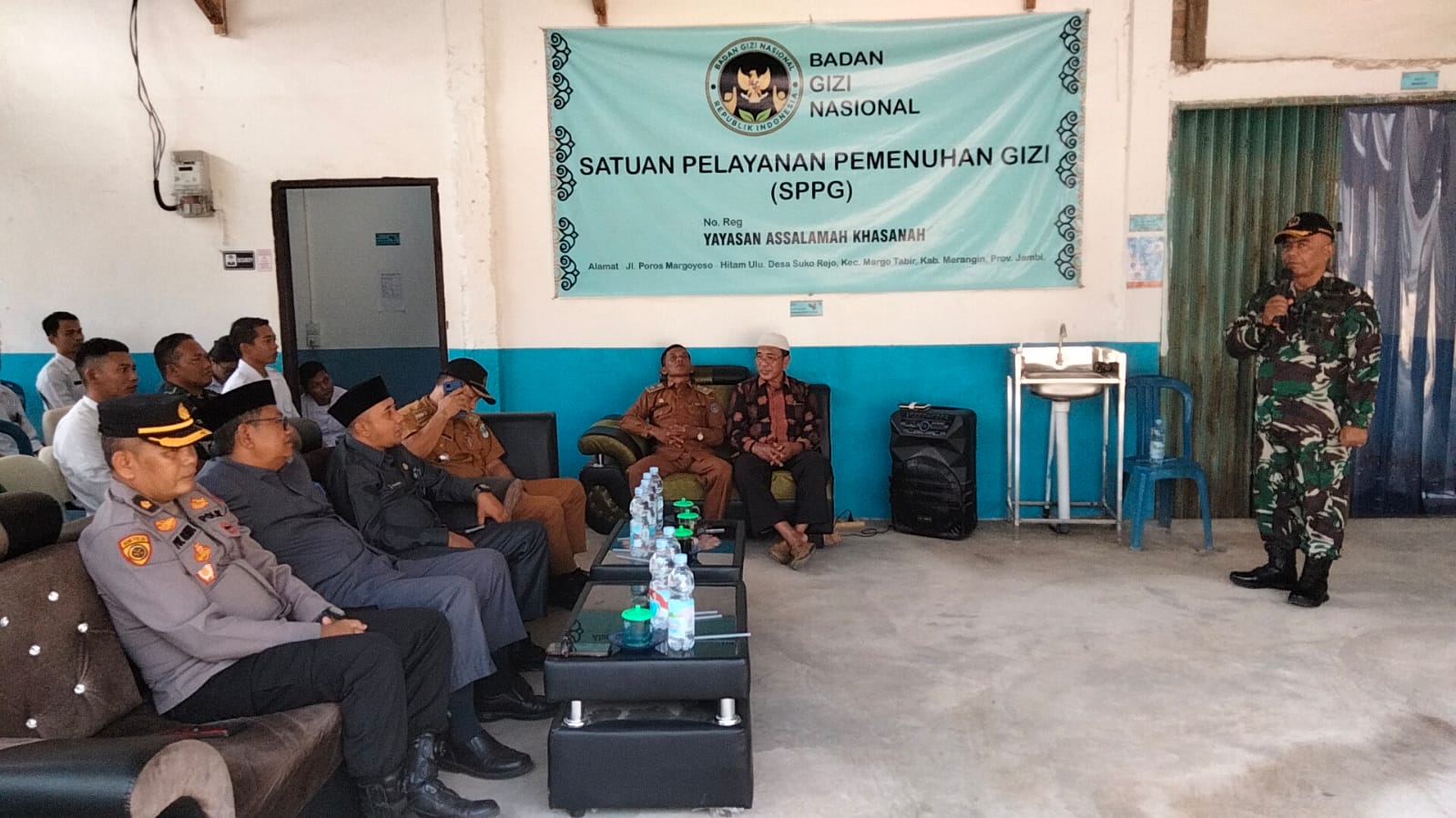 Bersama sejumlah pejabat Forkopimda dan Kodim 0420/Sarko yang dihadiri oleh Kasdim 0420/Sarko Mayor Inf Usman S.Ag, MPd.I, Staf Ahli Bupati Merangin Firdaus, S.H, Camat Margo Tabir Murliadi, S.E, Ketua SPPG Kabupaten dan Kecamatan, serta Kapuskesmas Sumber Agung Elni Syafutri, SKM.