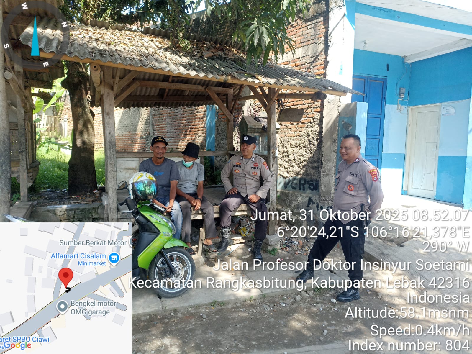 DinastiNews.Com|LEBAK–Anggota Polsek Rangkasbitung Polres Lebak,AIPTU Rahmat Subiakto dan BRIPPKA Juremi, giat sambang ke warga masyarakat,di Prof.Dr.Ir.Soetami,Kampung Lembur Sawah,Kelurahan CiJoro Pasir.