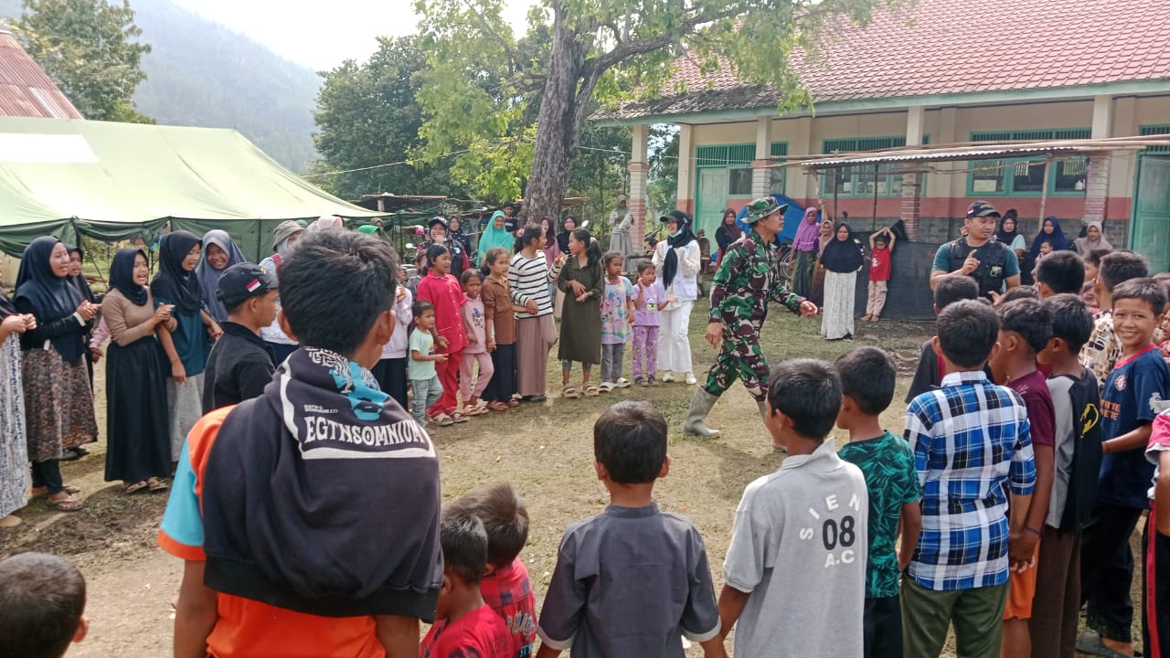 Program pemulihan psikososial yang di isi oleh Anggota Koramil dan Ibu Persit ini bertujuan untuk memberikan motivasi luka batin, khususnya kelompok usia anak-anak yang paling rentan mengalami kecemasan akibat kehilangan tempat tinggal.
