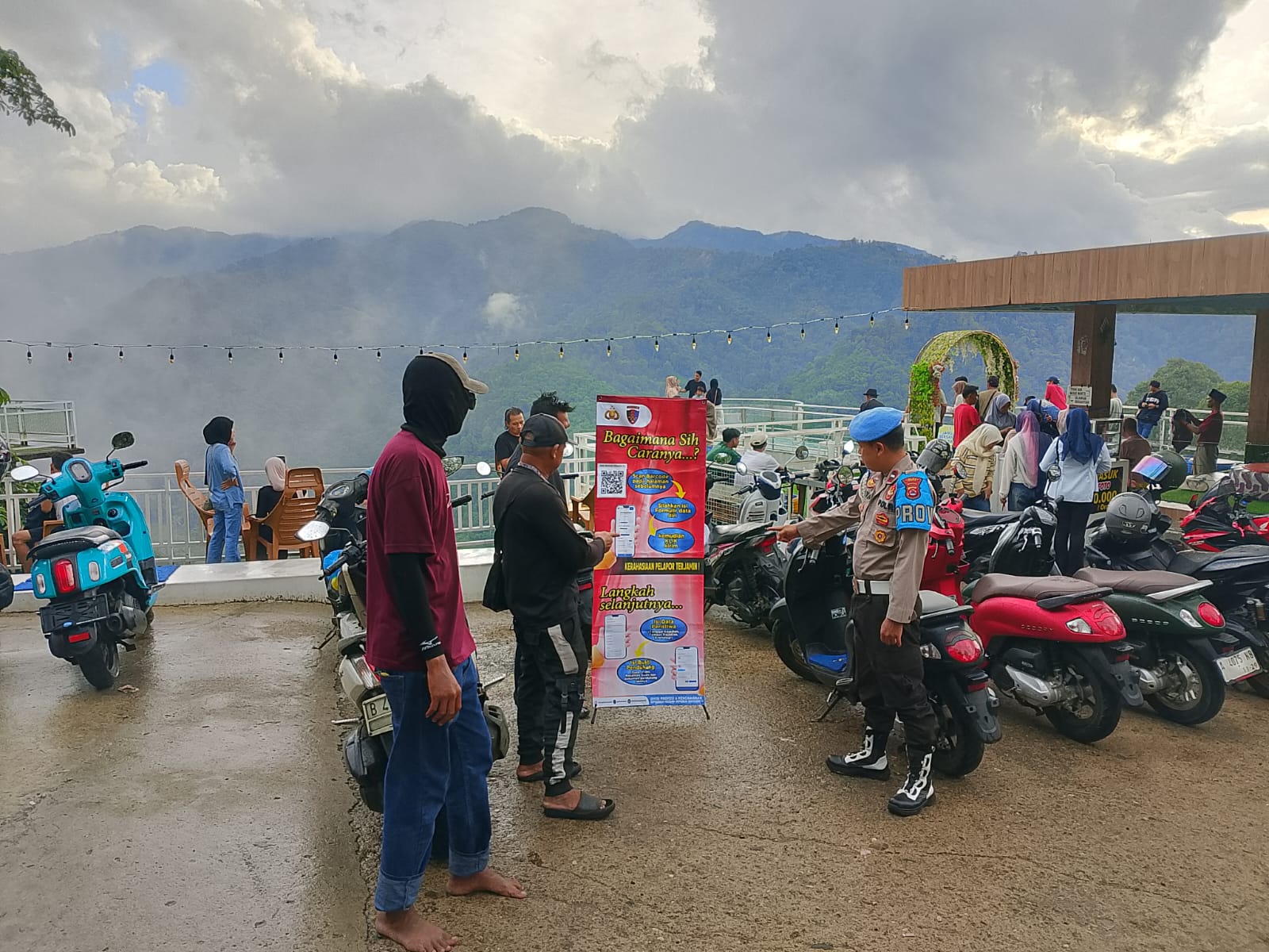 DinastiNews.Com||LEBAK- Kanit Provos Polsek Lebakgedong Polres Lebak AIPDA Yaya Supriadi,.SH, melaksanakan kegiatan sosialisasi barcode Yanduan kepada masyarakat pengunjung Wisata Lereng Cibolang.